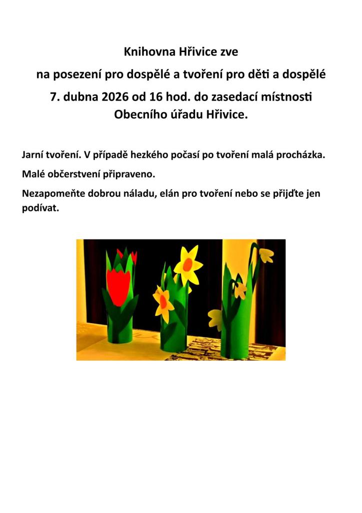 Knihovna Hřivice zve na posezení pro dospělé a tvoření pro děti a dospělé